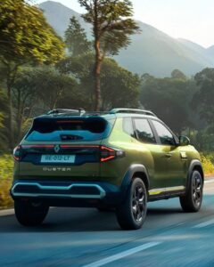 In terms of design, the Duster retains its signature tough stance with muscular wheel arches, all-around cladding and a bold front fascia. It features LED headlights with DRLs, a chunky bumper with silver accents and a prominent grille with ‘Duster’ branding. At the rear, it gets distinctive triangular LED tail lamps connected by a light bar and a roof spoiler.