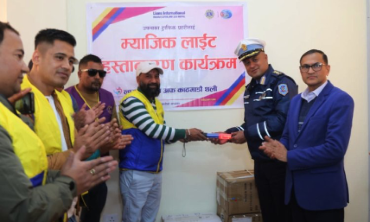 KATHMANDU: Lions Club of Kathmandu Thali has donated 400 magic lights to the Kathmandu Valley Traffic Police. Club President Rupak Simkhada handed over the lights to Kathmandu Valley Traffic Police Chief Senior Superintendent of Police Nawaraj Adhikari during a program…